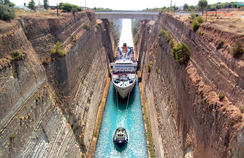 О канале думали Юлий Цезарь и император Калигула, но первым, кто действительно начал работы, стал император Нерон. В 67 году нашей эры тысячи рабов, солдат и заключённых начали рыть траншеи. Им удалось выкопать около трёх километров. Но вскоре Нерона свергли, и грандиозный проект снова остановился — на 18 столетий. Лишь в XIX веке, когда появились паровики и динамит, греческая компания смогла завершить строительство. Канал открылся в 1893 году.